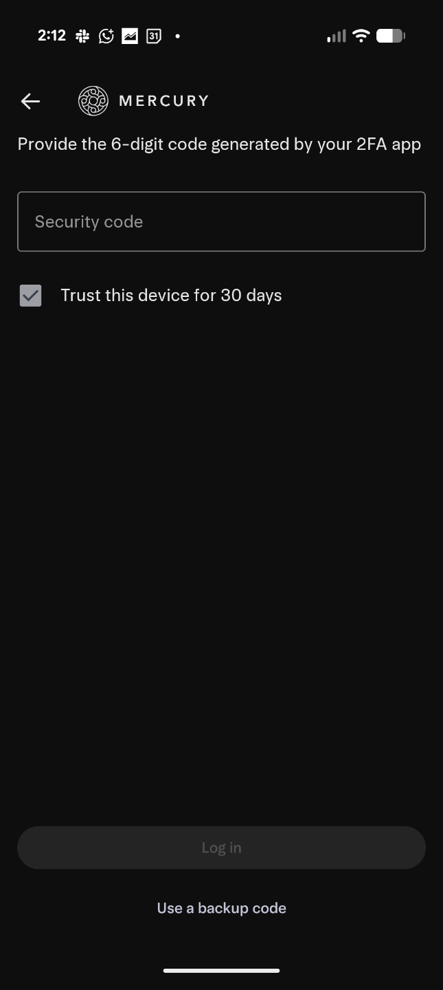 3. Inicia sesión en la app de Mercury