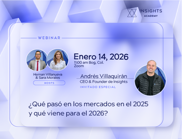 Una clase gratuita, en vivo, con análisis de datos reales, comportamiento de portafolios y preguntas en vivo con Andrés Villaquirán, CEO de Insights.